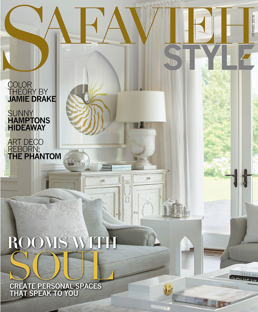 - Featured on cover and in article Bright Hampton (pg 56) of Safavieh Style Spring/Summer 2016 Magazine